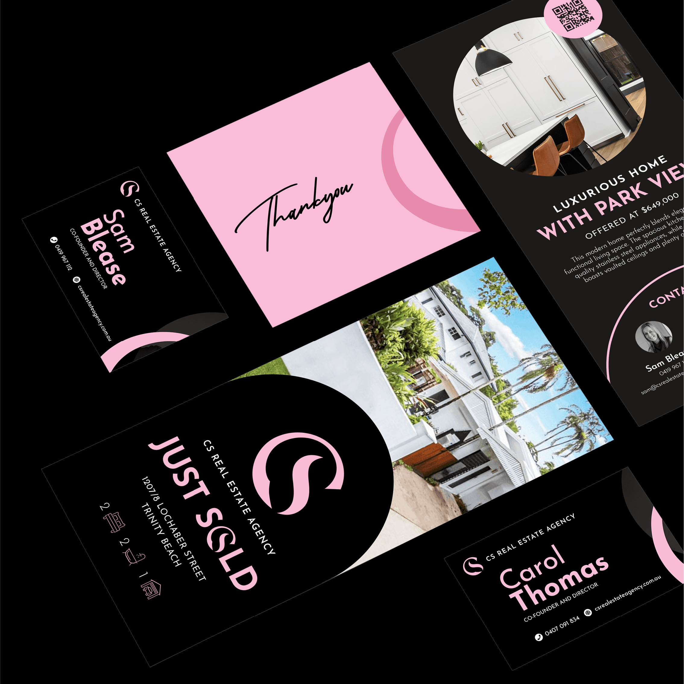 CS Real Estate Agency needed a clean, professional identity that felt modern, confident, and trustworthy. The branding was built around a refined monogram mark and a minimal black-and-white palette with soft accent tones, creating a premium yet approachable feel. Applied across stationery, signage, and print collateral, the identity delivers a cohesive and polished presence that reflects credibility and professionalism in the real estate space.